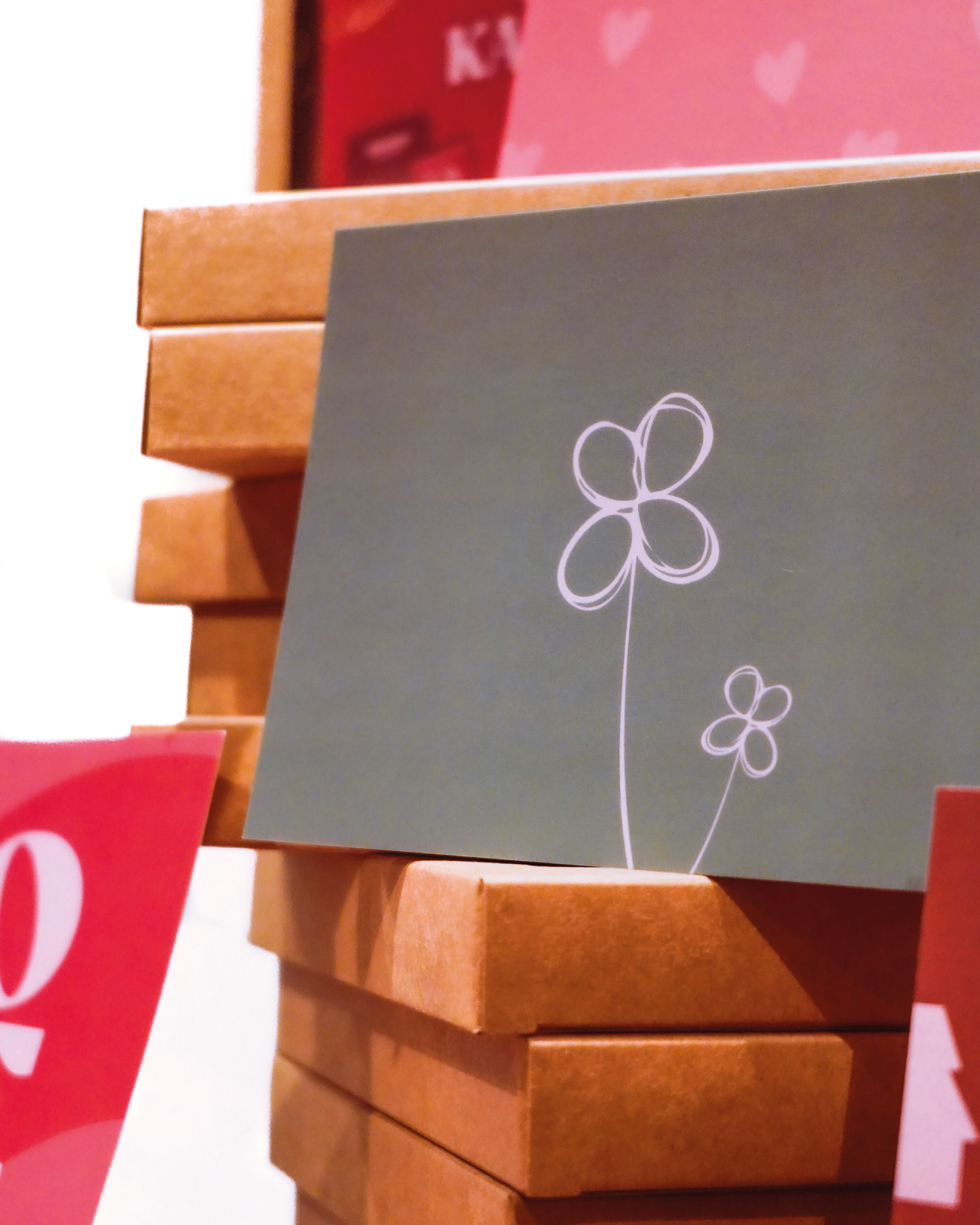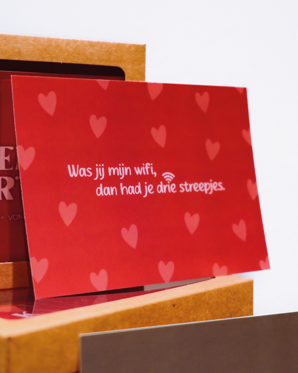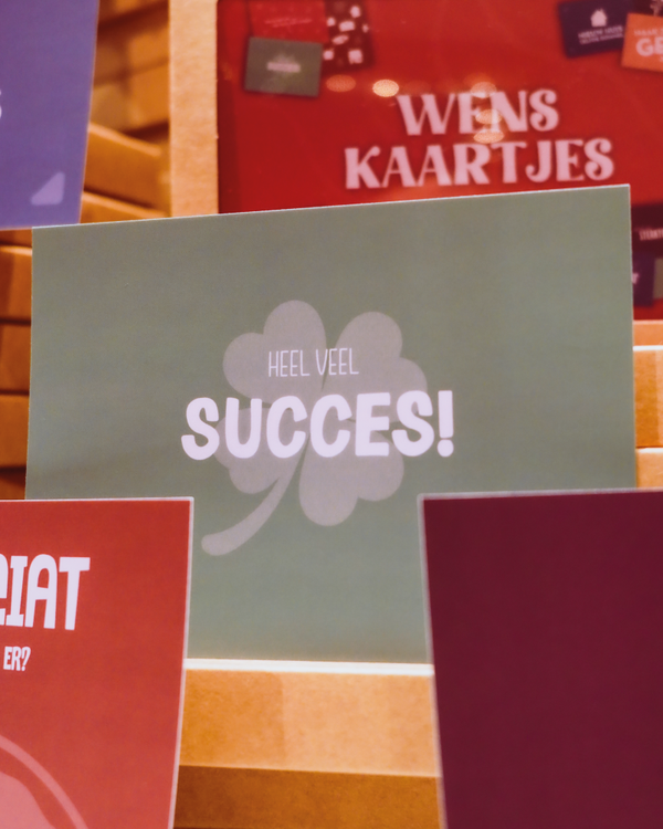 Het resultaat is een set van twaalf wenskaarten met twaalf enveloppen. Een warme, speelse en oprechte set voor grote momenten, kleine gebaren en alles wat je niet onuitgesproken wilt laten.